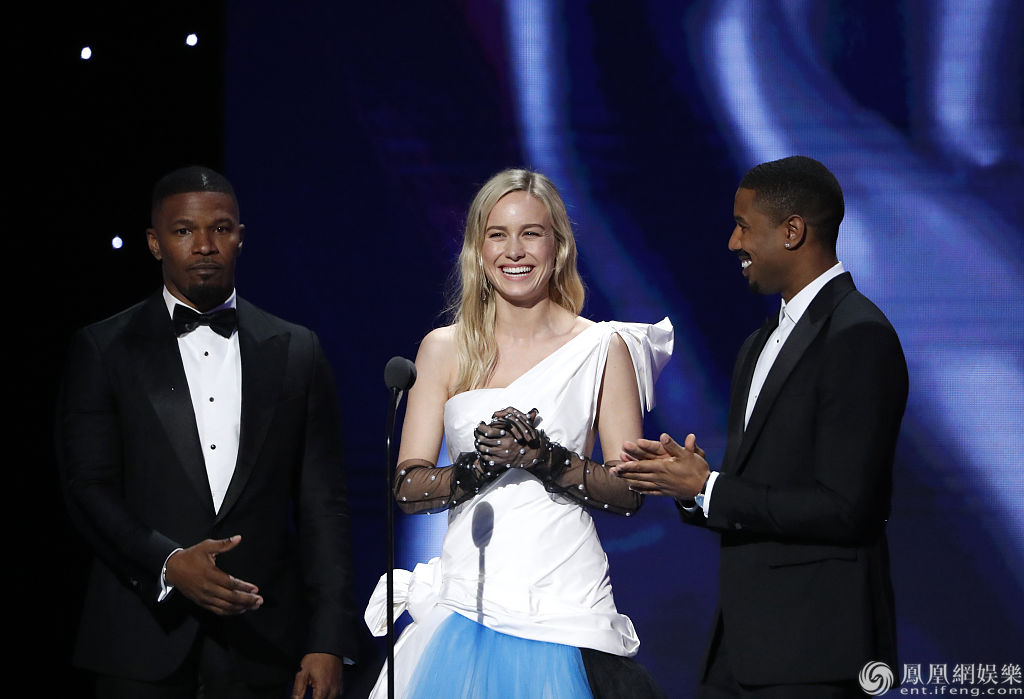 “惊奇队长”布丽·拉尔森(Brie Larson)与迈克尔·B·乔丹携手颁奖。