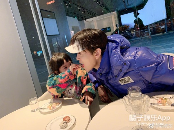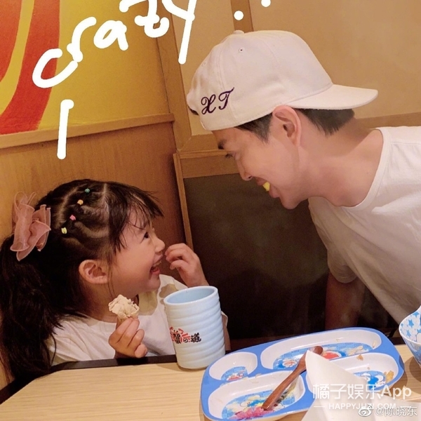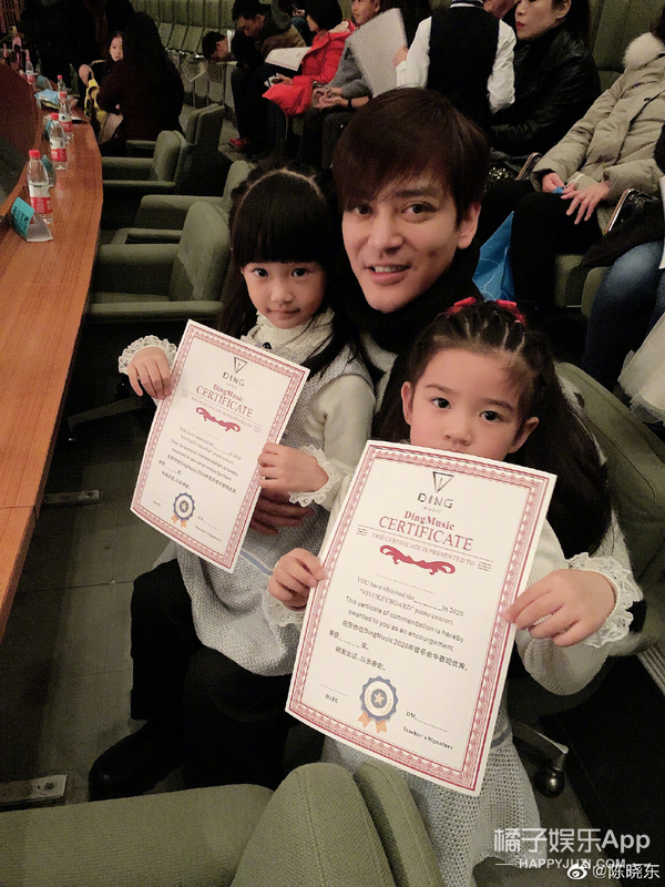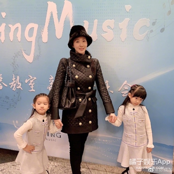 陈晓东也很爱晒娃,经常在微博上秀一四口。