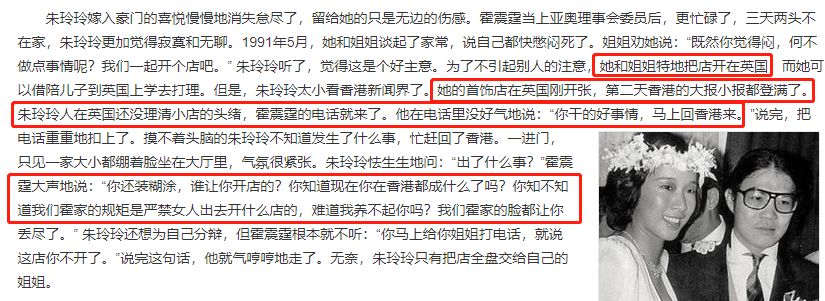人们常说“一入豪门深似海”,朱玲玲的生活虽没有那么夸张,但也没有如鱼得水。