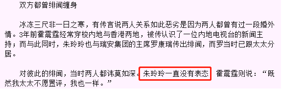 对于和罗的绯闻,朱玲玲一直没有表态。