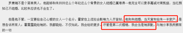 结婚当日,就宣布几十亿家产与朱玲玲共享,并表示会像原配一样对待。