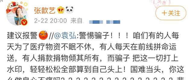 张歆艺老公袁弘连用15个问号,质问这位蒙太奇总裁:国难当头,你这么做良心不痛吗?有的人每天为了医疗物资不眠不休,有人每天在前线拼命运送,有人捐款捐物倾其所有,但是骗子却把这一切打上水印,算在了自己头上。并且还告诉大家,要警惕骗子!