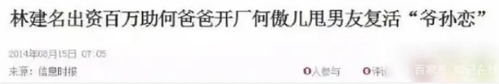 从这以后,何傲儿的父亲就开始发动自己原先在富商圈的人脉,为女儿做媒,父亲将眼光投到了曾是旧友的香港富豪林建名身上。