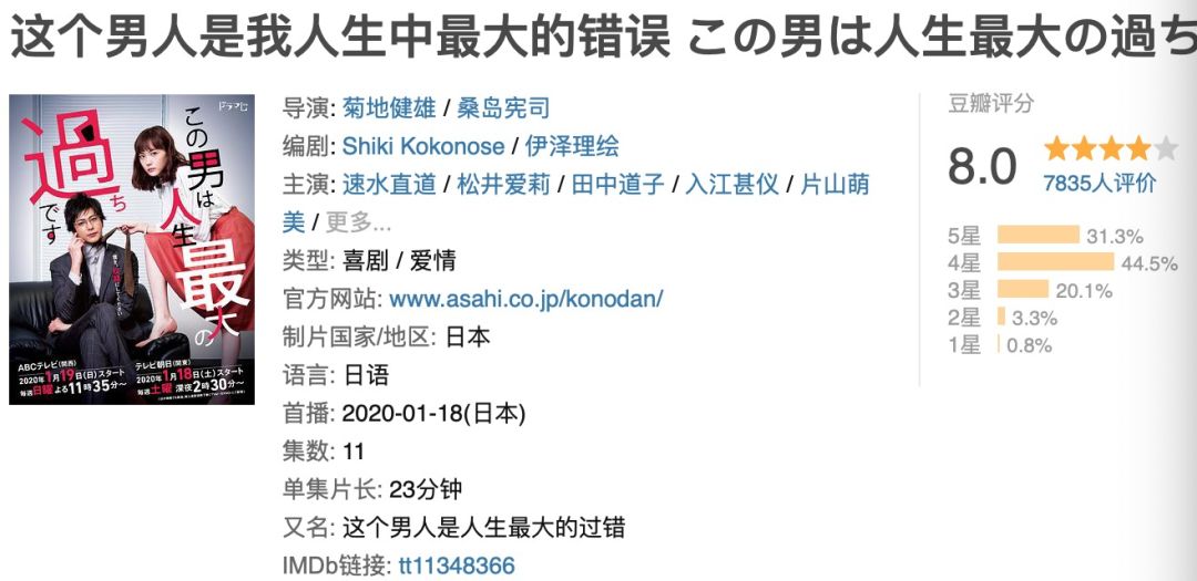 今天就来介绍另一部——《这个男人是我人生中最大的错误》,豆瓣评分8.0分,差不多是这季评价最好的新剧了。