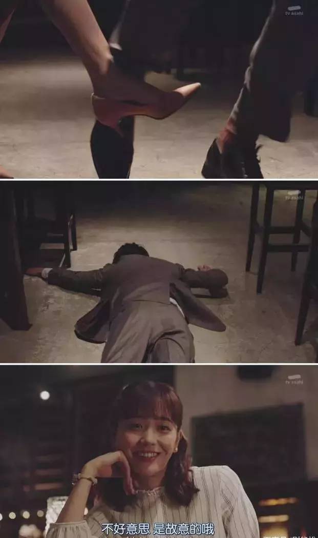 这时,一位西装革履戴眼镜的长腿男人,前来和女主角讲道理,顺便反唇相讥一下:要抱怨,就回家关上门自己哭;人蠢,就去看医生。