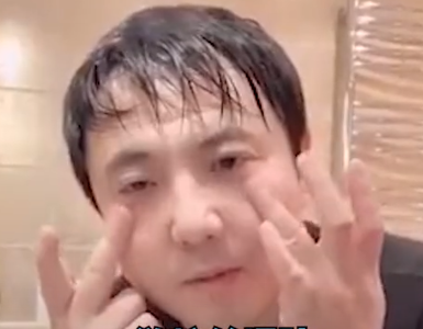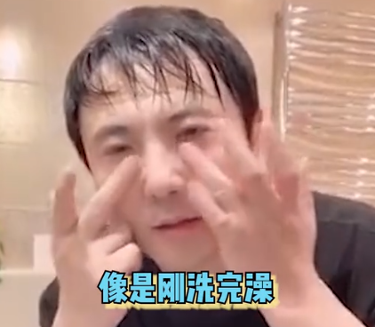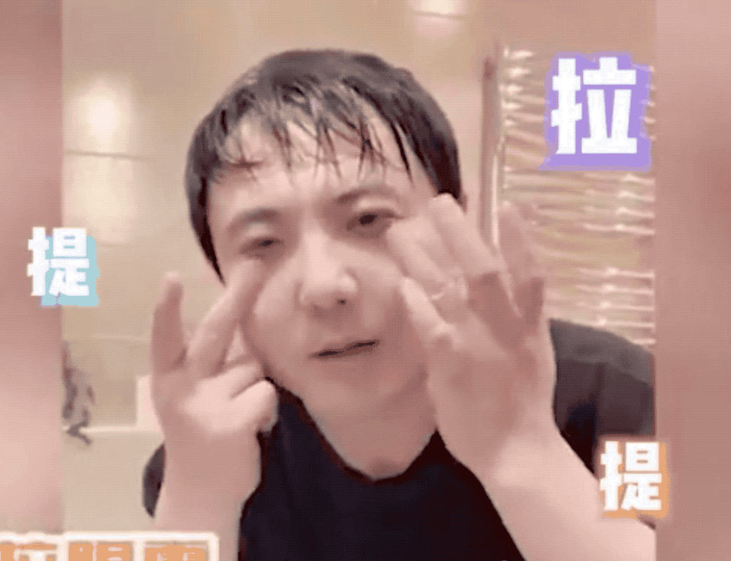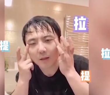 视频中的他似乎刚刚洗完澡,化身美妆博主对着镜头以自己做示范,不断爆出专业术语,专心致志指导粉丝如何涂抹眼霜。