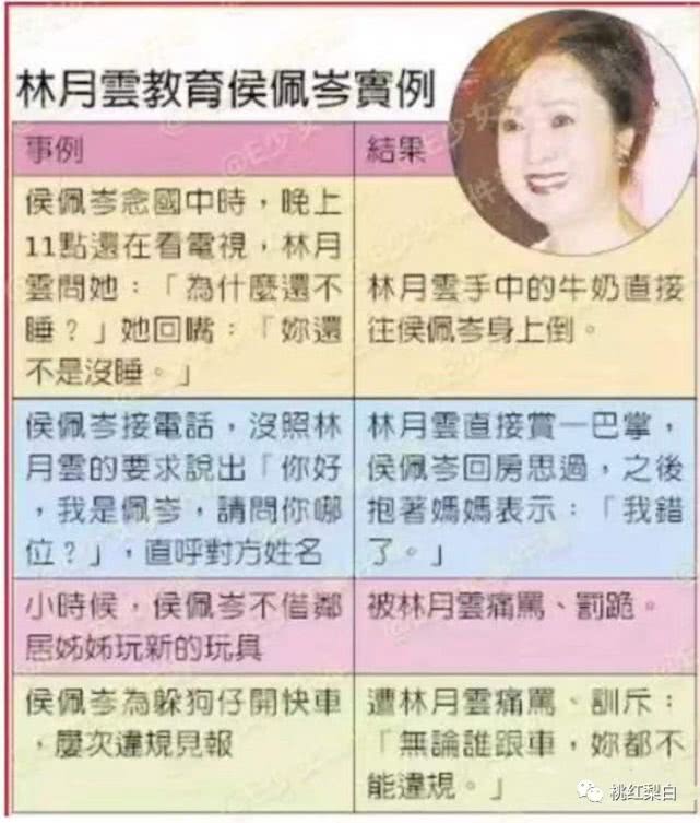 侯佩岑的妈妈林月云从小就对她非常严格。
