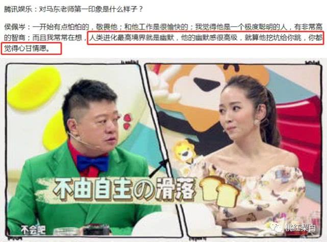 后台采访的时候,侯佩岑夸起马东,连“人类进化到最高级就是幽默”的话都能张口就来。