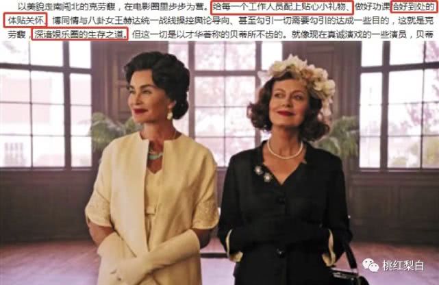 美剧《宿敌》里,贝蒂·戴维斯也揶揄过琼·克劳馥:拜托你不要再送每日小礼物了,我也没功夫回礼,你把你的戏演好吧。