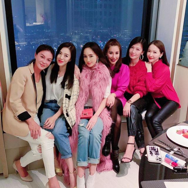 虽然当天是情人节,但关颖也不放过和名媛好友交流感情的机会,当天名媛团也都身穿粉红色系的造型,情人节和姐妹团过也很有浪漫的气氛!